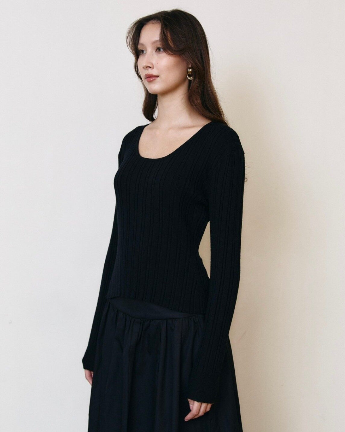 AIMER - U-Neck Long Sleeve Top in Black Knit
